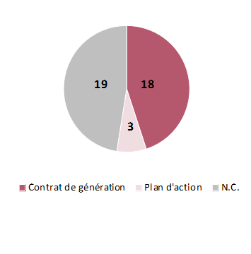 L'année 2013 est bel et bien l'année du contrat de génération : 21 entreprises du CAC 40 ont communiqué clairement dans leurs documentations officielles sur la signature de contrats de génération ou, à défaut, sur l'établissement d'un plan d'action précis sur le sujet (3 entreprises concernées).