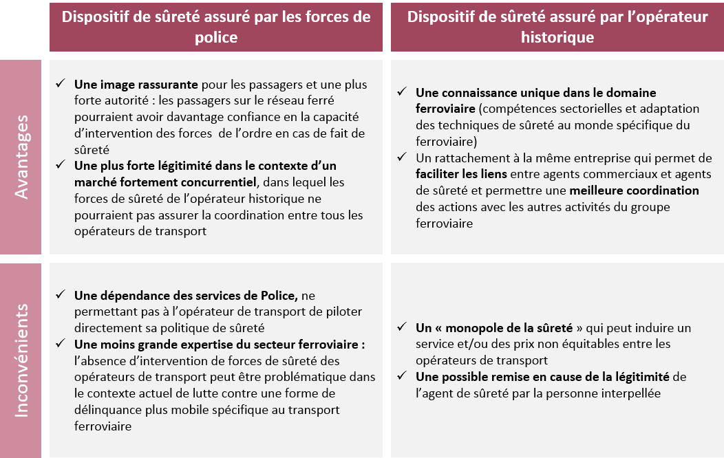 Dans le cas d’un rattachement à l’opérateur historique, les pouvoirs des agents chargés de la sûreté ferroviaire sont généralement élargis par rapport à d’autres agents de sécurité privés. Par exemple, ils peuvent avoir le droit d’effectuer des missions en civil, d’être autorisés à porter une arme, ou de verbaliser un client… Les avantages d’un tel rattachement sont légitimes.